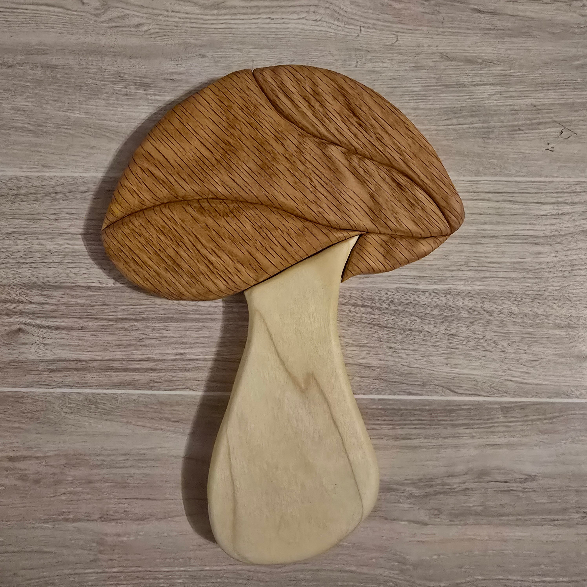 The warm tones of oak paired with the soft hues of poplar create a striking balance, making this mushroom a unique and earthy accent for rustic, farmhouse, or nature-inspired décor.