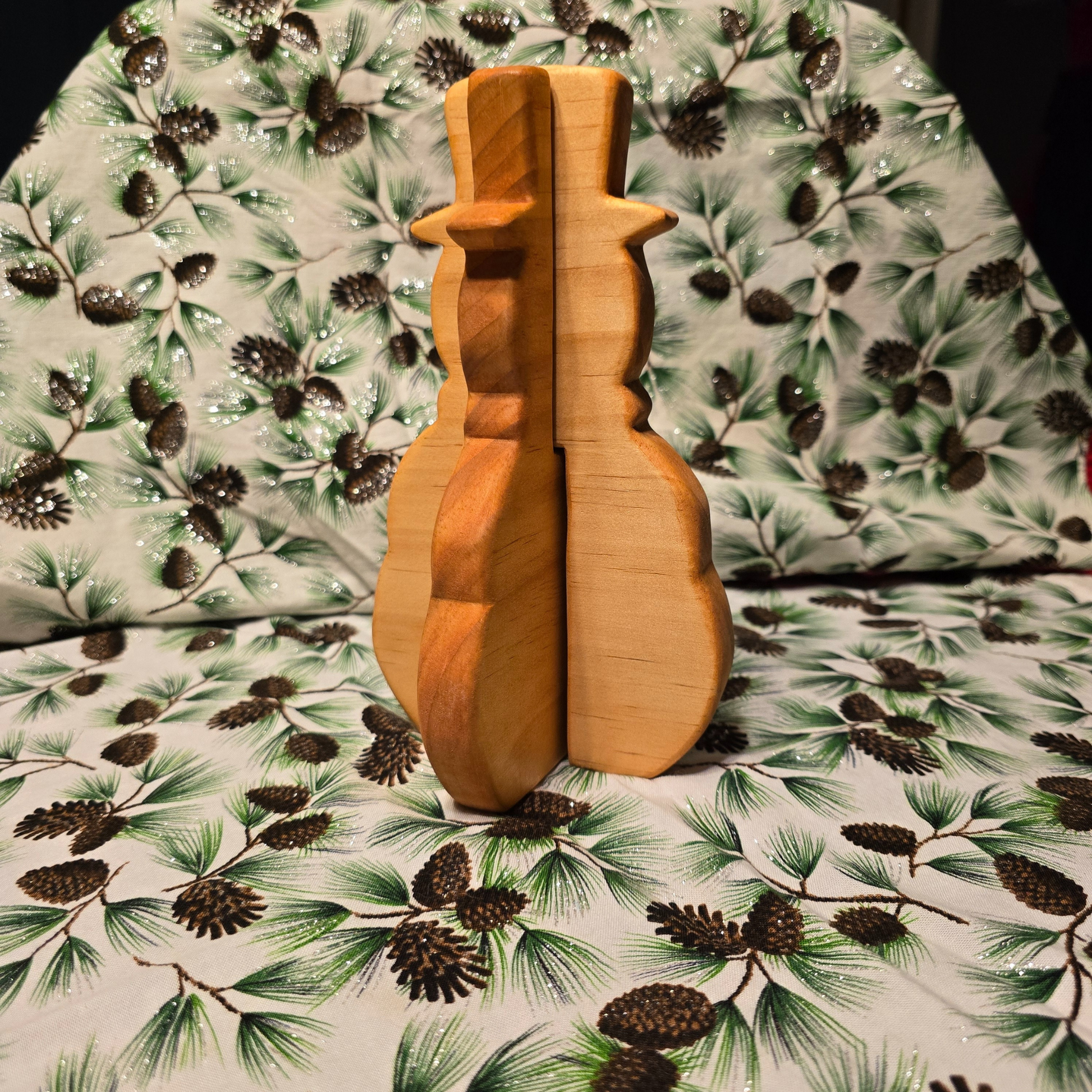 Each Snowdrift Stander is individually cut, shaped, and sanded in our woodshop, allowing the warmth of the natural grain to shine through. The smooth curves, classic snowman silhouette, and rustic finish make it the perfect accent for mantels, shelves, centerpieces, and woodland-themed holiday displays.