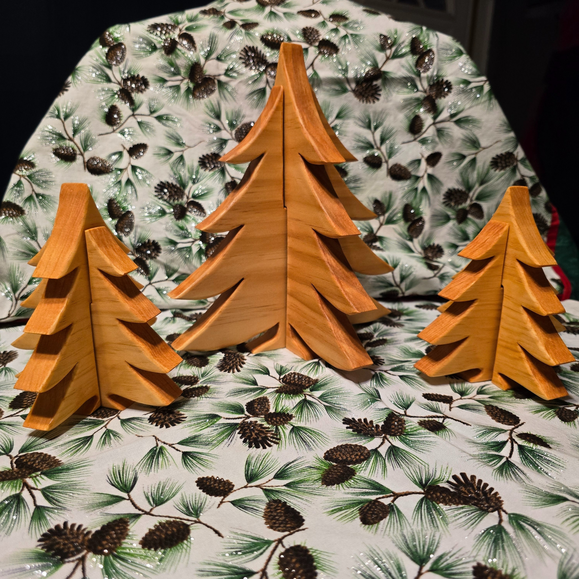 Handcrafted from solid wood, each tree is shaped, sanded, and finished in our woodshop to highlight the natural grain. The 9” Large Pine and 5” Small Pine pair beautifully to create a cozy woodland scene on your mantel, shelves, or Christmas display.